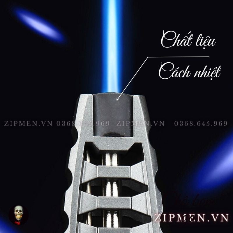 Ngay ở đầu vòi phun lửa có đường ống trụ dẫn tia lửa là chất liệu cách nhiệt vì vậy giảm nhiệt độ truyền đến đến cây bật lửa vì vậy khi anh em có chẳng may đụng vào cũng không bị nóng, bị bỏng đâu nhé.
