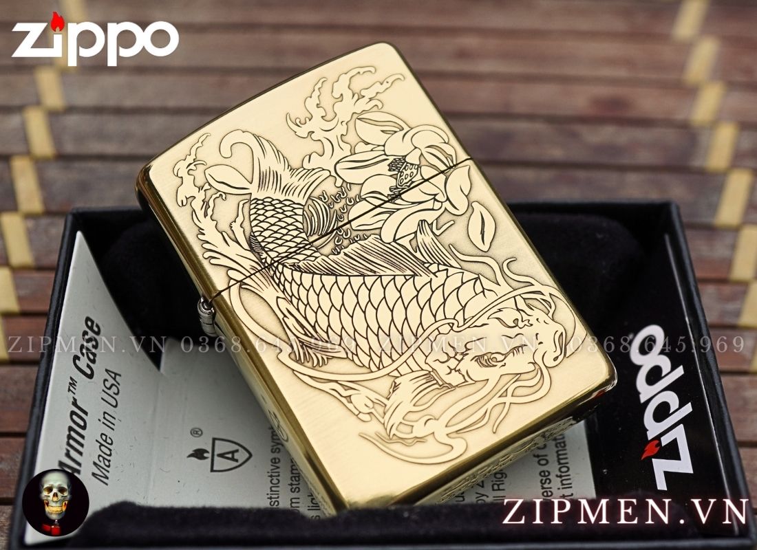 Trên thị trường có rất nhiều mẫu zippo đẹp, trong đó không thể không kể tới chiếc bật lửa Zippo cao cấp USA armor Cá chép bông sen.