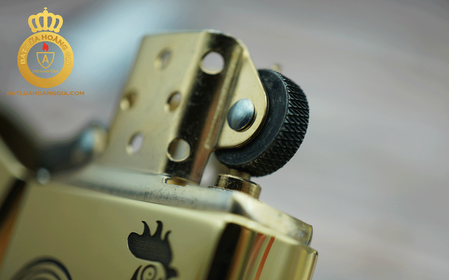 Bên cạnh đó chiếc Zippo cao cấp còn có cổ đá cao màu vàng làm bằng đồng rất tròn, bánh xe của zippo thì cắt xéo sâu hình quả trám rất sắc sảo và rất bén nên độ nhạy lửa phải gọi là tuyệt vời.