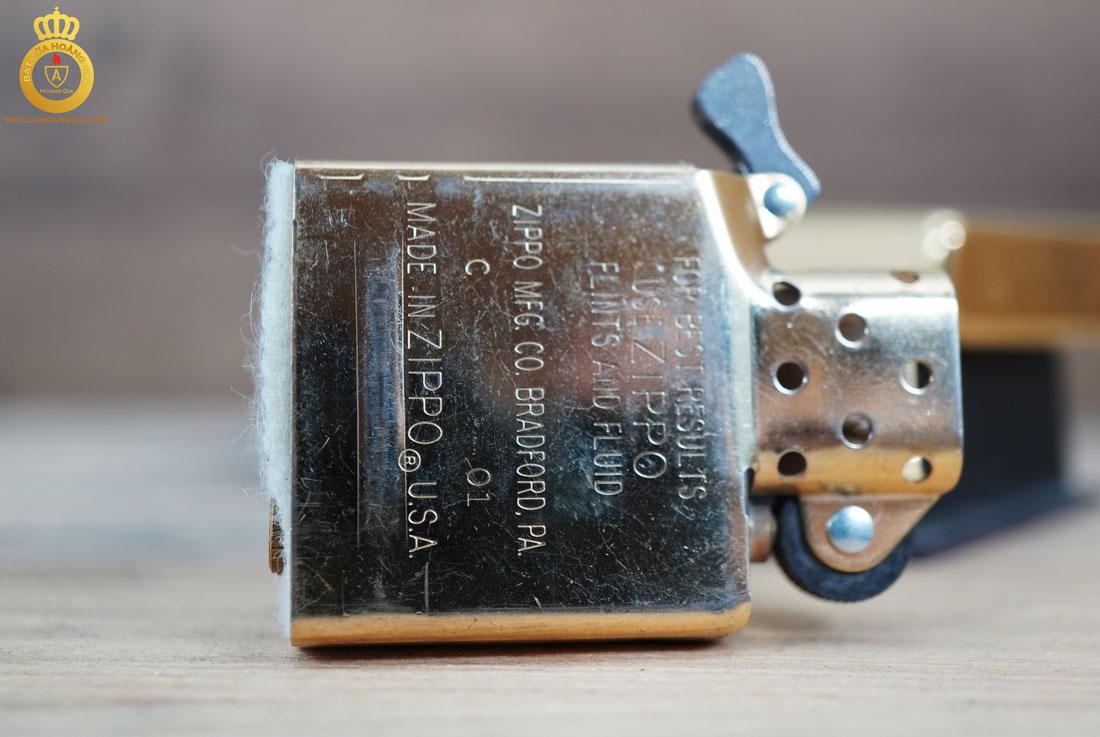 Dưới đáy cây zippo này có ký hiệu 01 tức là được sản xuất năm 2001