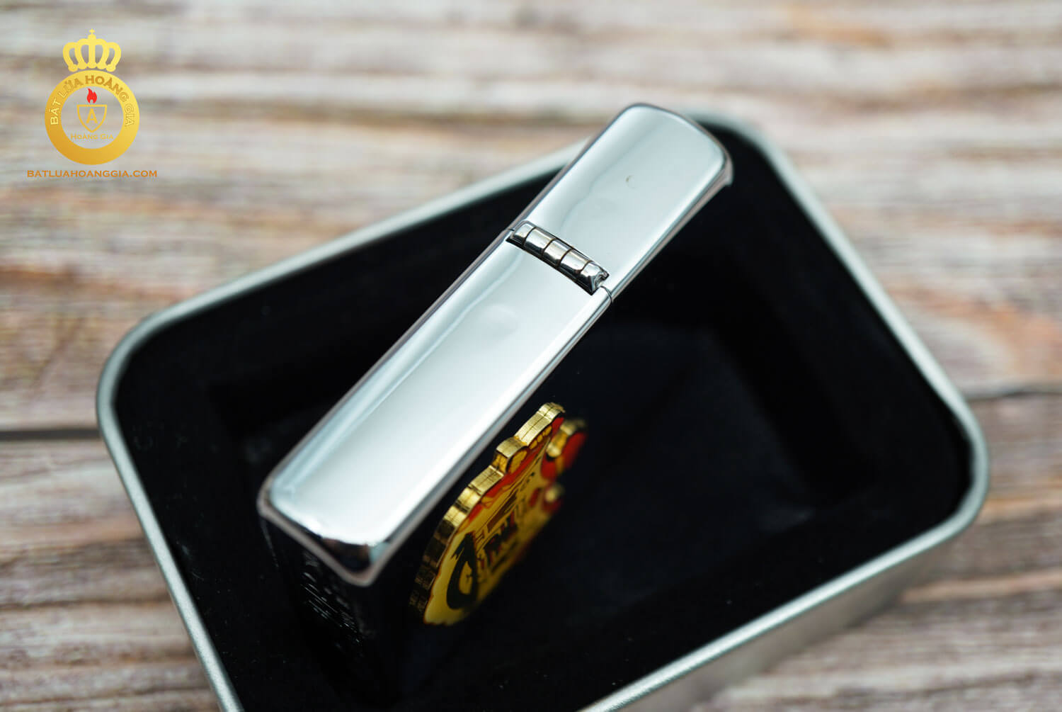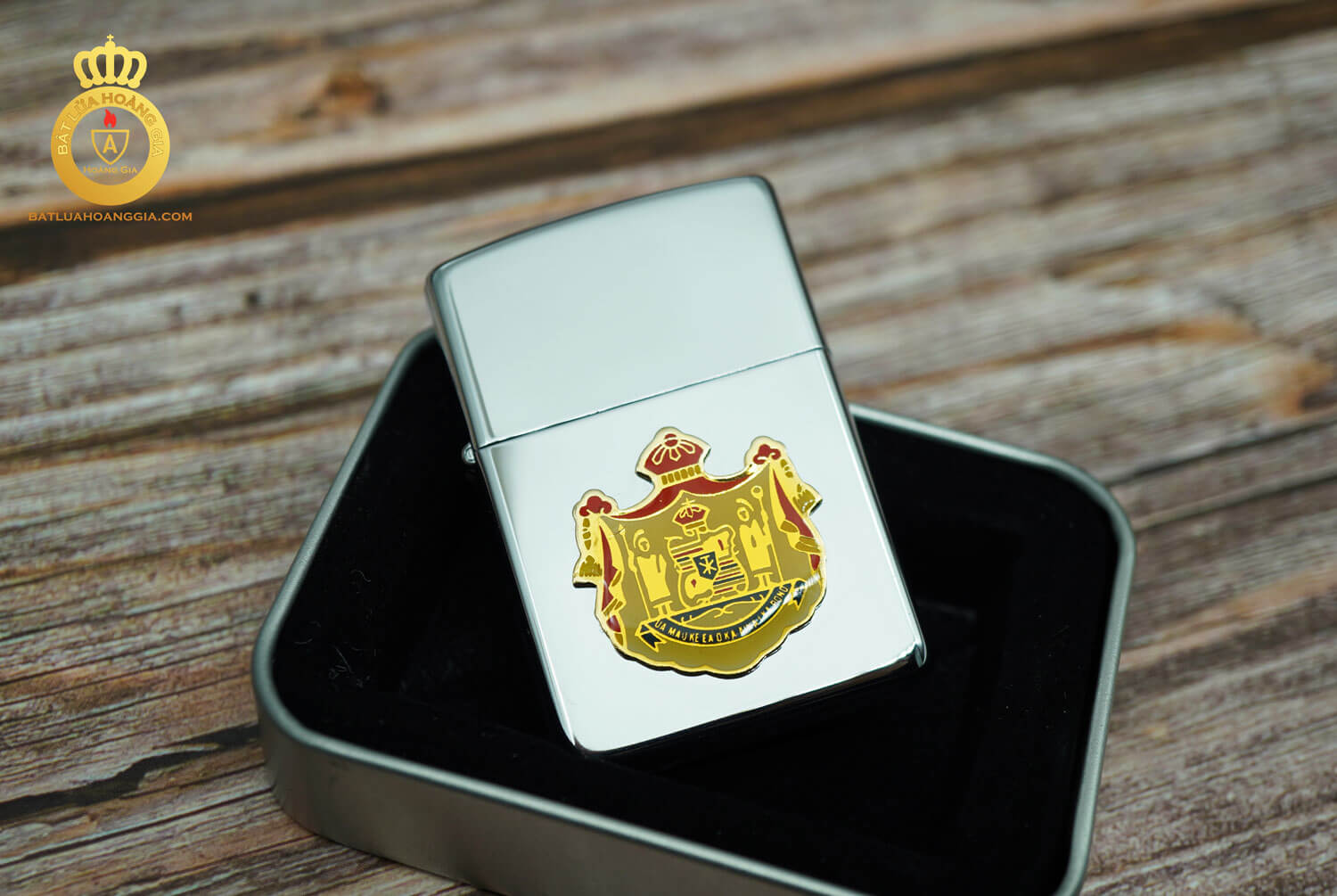 CHẤT LIỆU CỦA CHIẾC BẬT LỬA ZIPPO LÀ MÃ 1995 CHỦ ĐỀ EMBLEM HOÀNG GIA