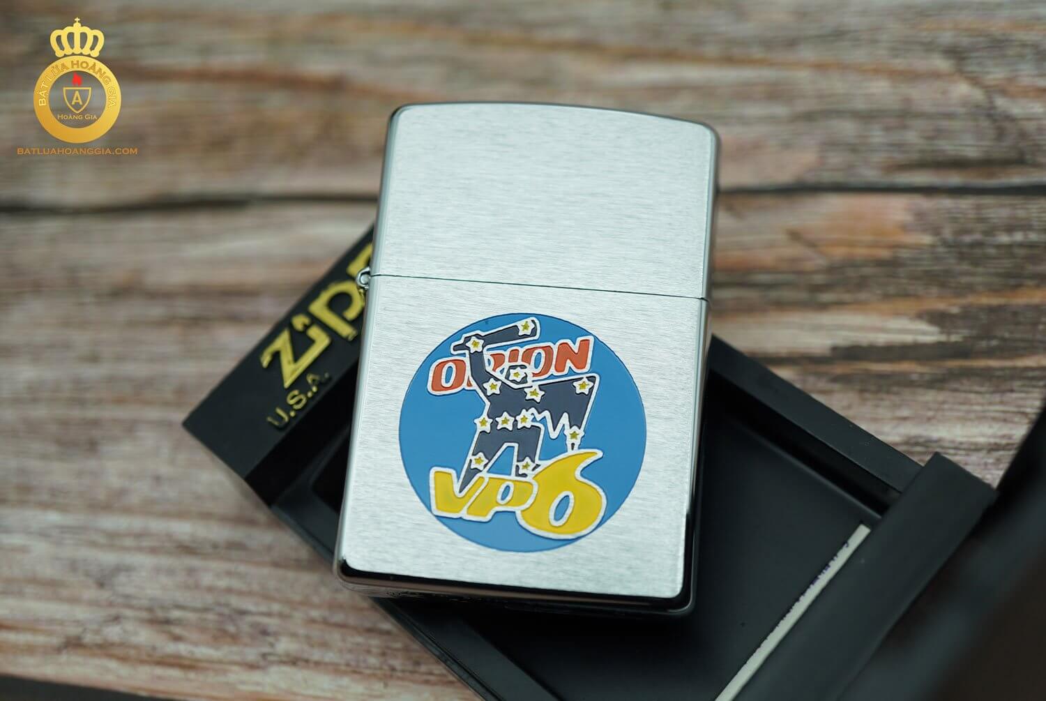 Chiếc zippo này có bề mặt gần như mới, có nguyên cả hộp.Với chất liệu là bằng đồng khối được mạ 1 lớp chrome trắng nhám sau đó được sơn tĩnh điện logo ORION VP6 ở phần thân rất đẹp.