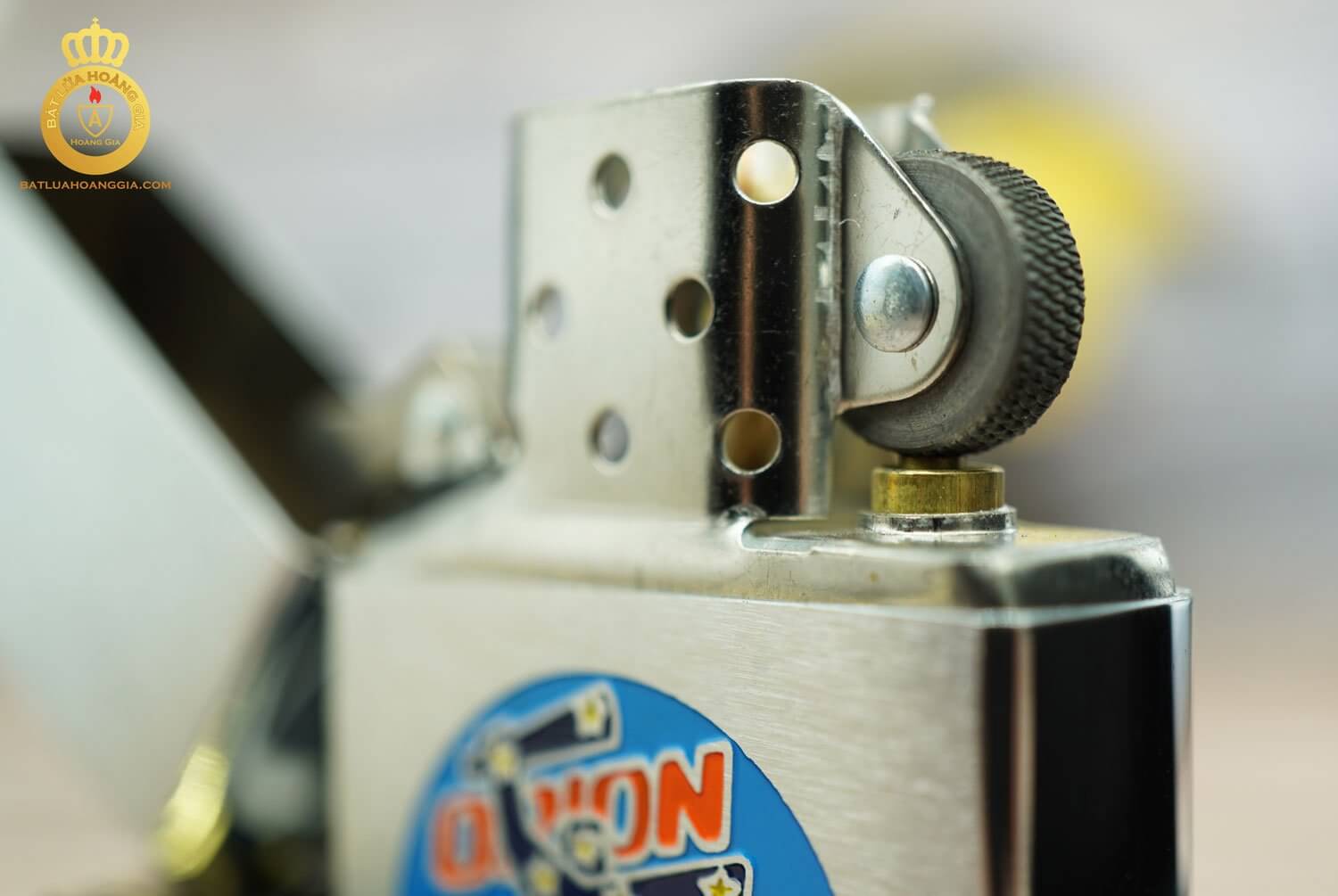 Cổ đá chiếc zippo được chế tác từ đồng, bán xe cắt xéo sâu và sắc sảo, còn rất mới và nhạy lửa.