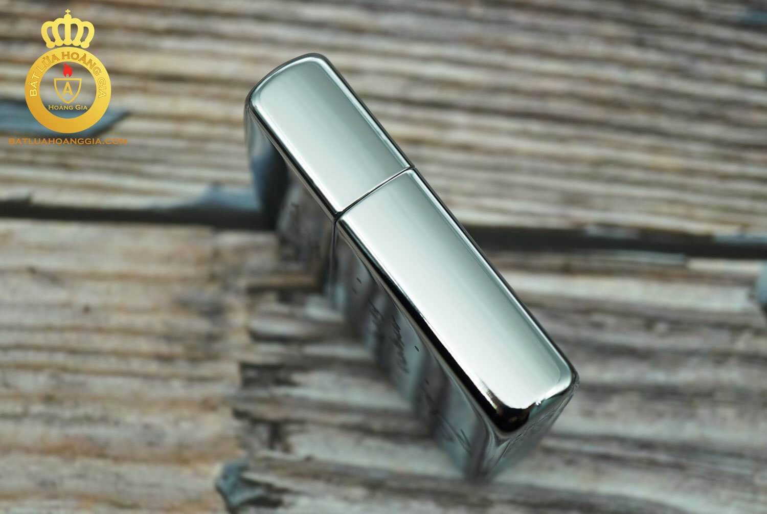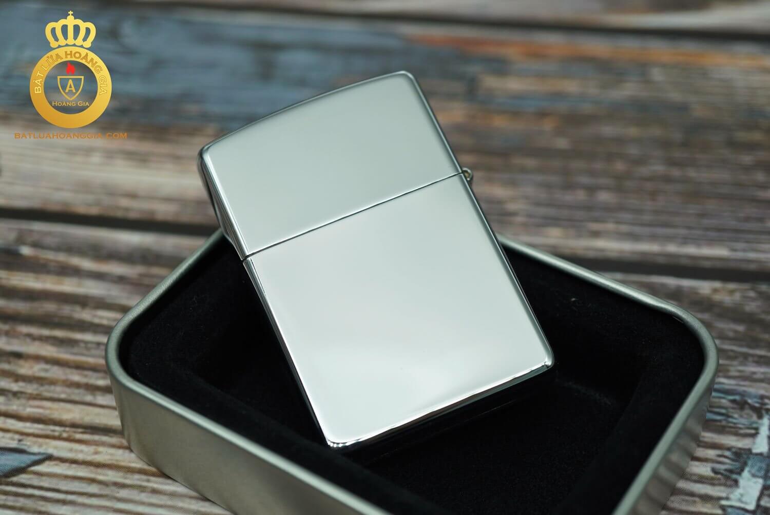 Mặt sau của chiếc Zippo mạ chrome trắng bóng không có hoa văn hoạ tiết gì
