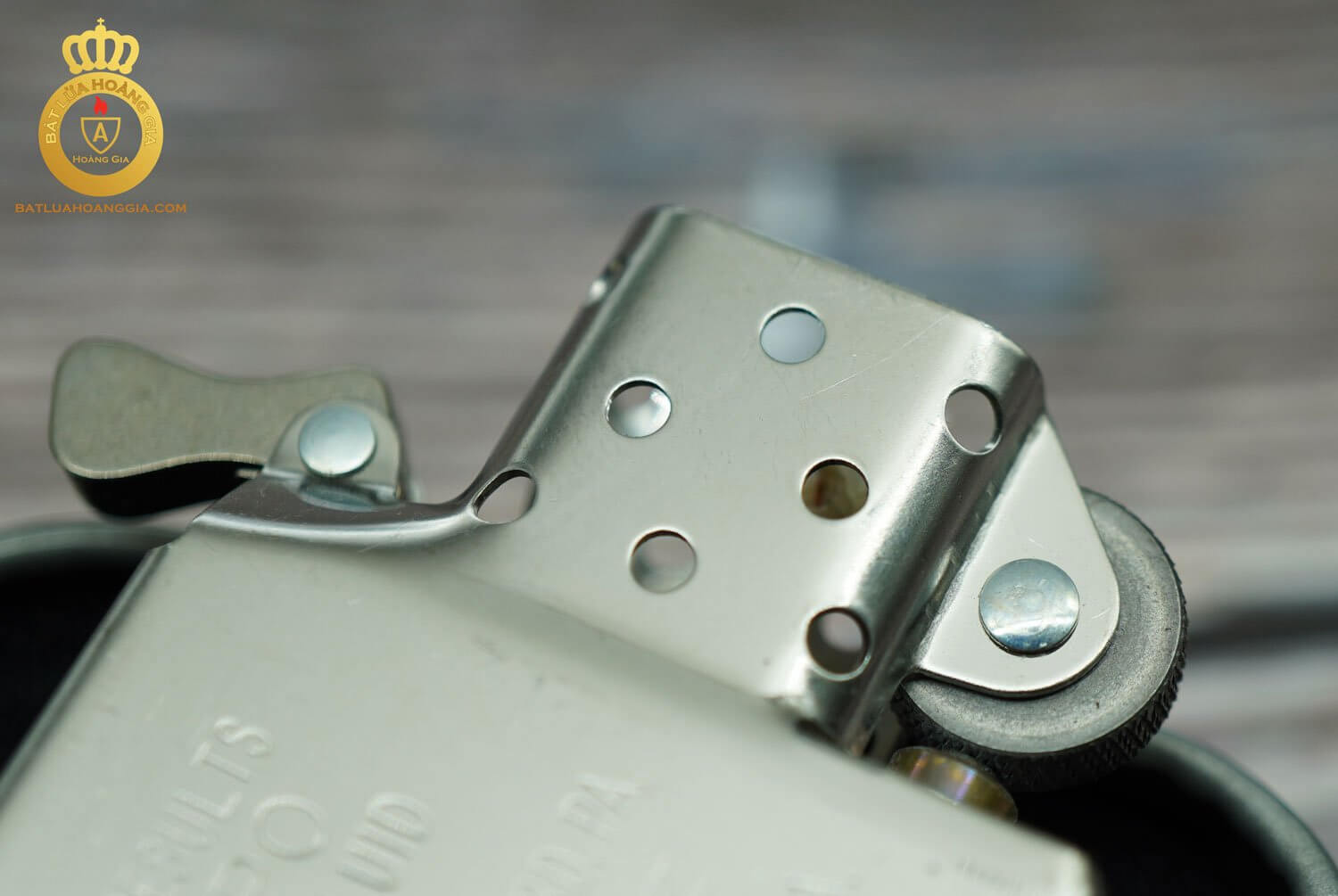 Bản lề 5 chấu giúp chiếc Zippo rất chắc chắn và giữ xăng tốt.