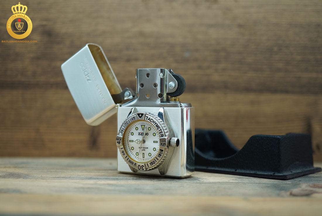 Ảnh chi tiết chiếc bật lửa zippo đồng hồ