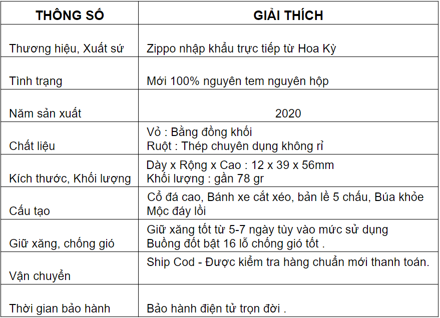 Lời kết: Anh em có thắc mắc gì về chiếc Zippo này hay những sản phẩm khác như thông tin sản phẩm, bảo hành, cách mua hàng và thanh toán xin liên hệ:
