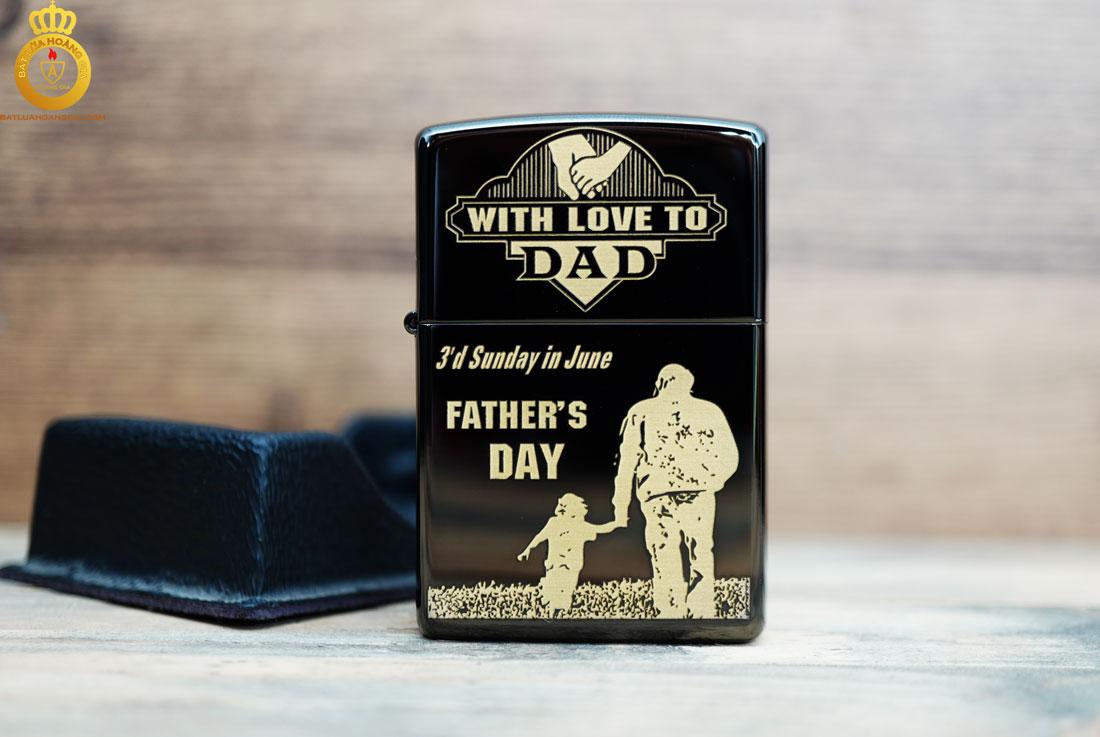 Cả 6 mặt của chiếc zippo đều được phủ lớp sơn nano ebony,cùng điểm nhấn là hình ảnh " Ngày của cha " rất sắc sảo đẹp mắt về mặt hình ảnh và đầy ý nghĩa về nội dung.