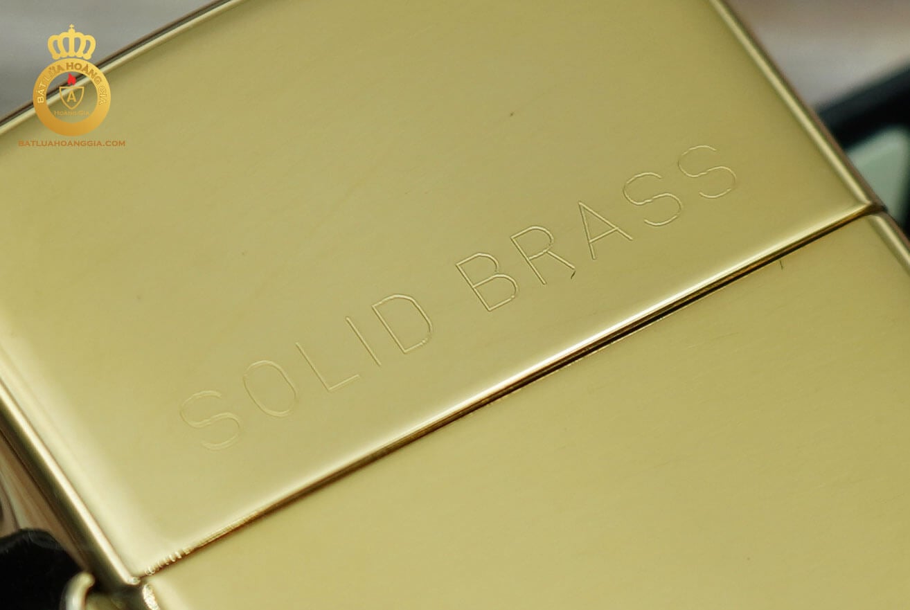Dòng chữ solid brass trên nắp của zippo