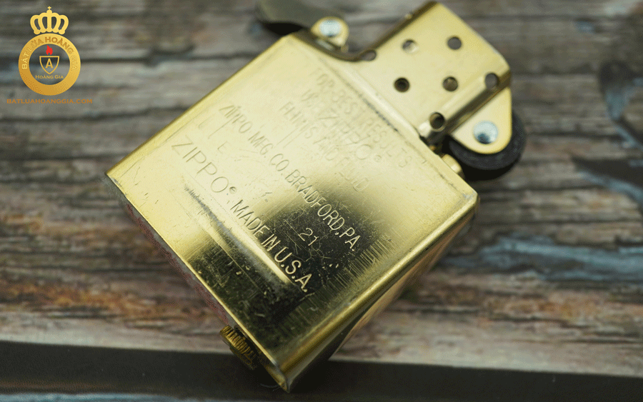 Cây Zippo phổ thông này có mộc đáy bằng 3 hàng chữ đặc trưng, những dòng chữ và số được rập rất sâu, rất thanh mảnh thể hiện sự tinh tế trong khâu sản xuất của một chiếc Zippo USA chính hãng.
