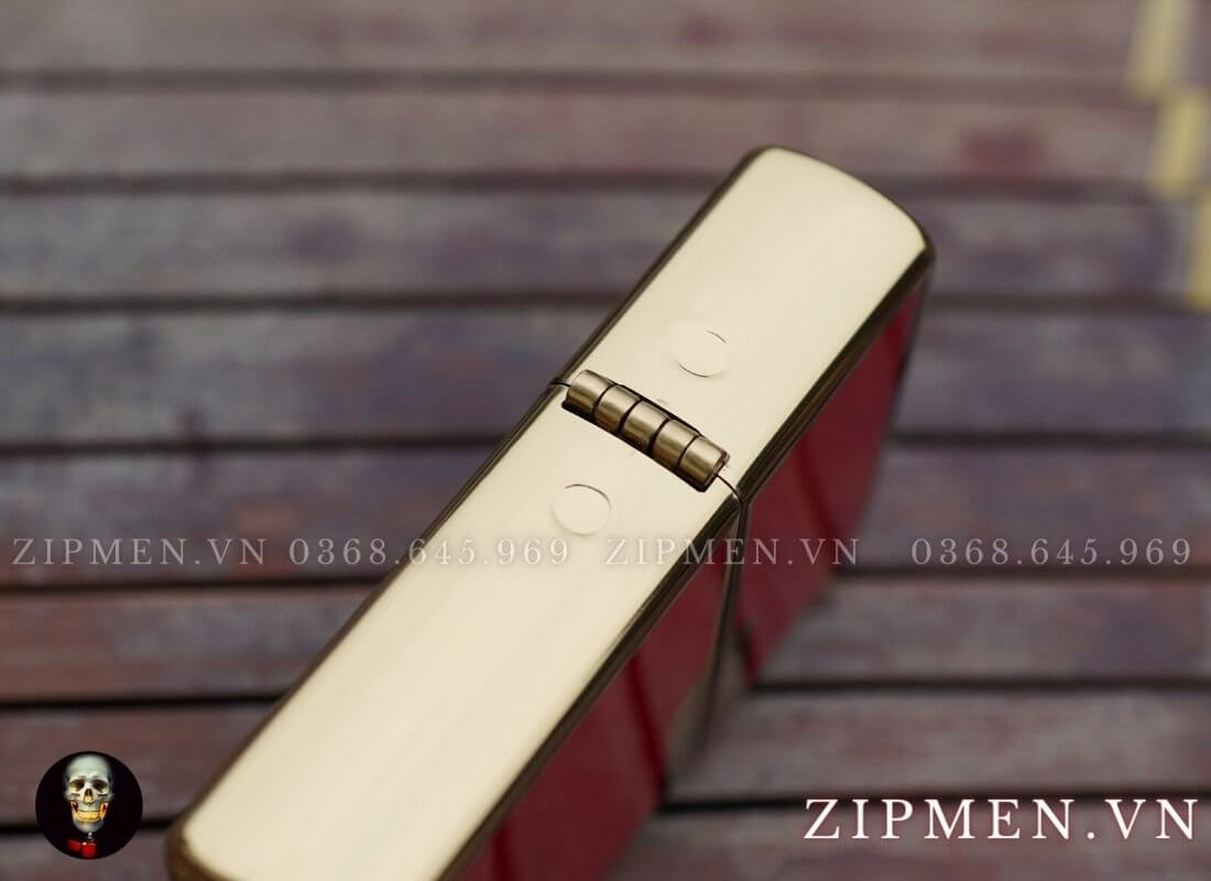 Vỏ của chiếc bật lửa này được làm từ đồng thau (Solid brass) rồi được mạ thêm một lớp mỹ ký màu vàng bóng ở 4 đường viền rất đẹp.