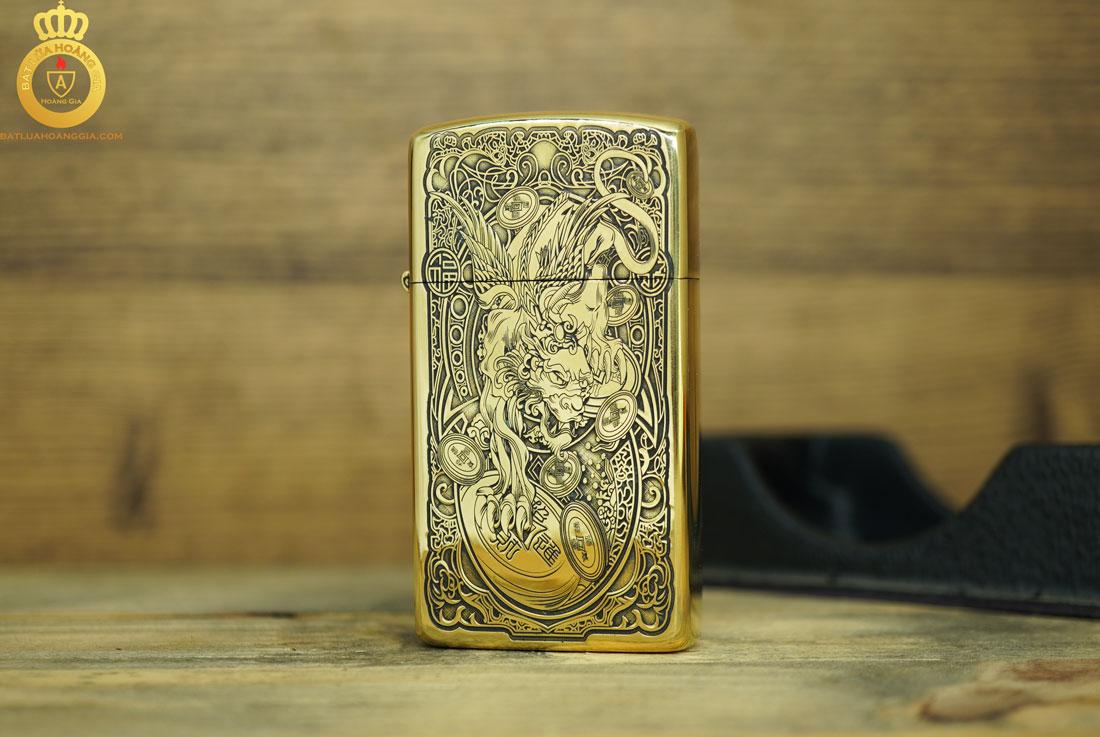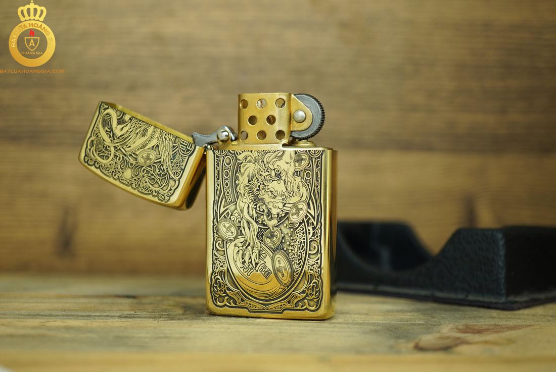 Với chất liệu 100% bằng đồng được đúc nguyên khối, chiếc bật lửa Zorro Slim Kỳ lân có mộc đáy lồi với nét khắc sâu, sắc nét. Cùng với đó là bản lề 5 chấu đem lại sự chắc chắn, kín khít giúp giữ xăng tốt từ 4-10 ngày cho 1 lần châm xăng.