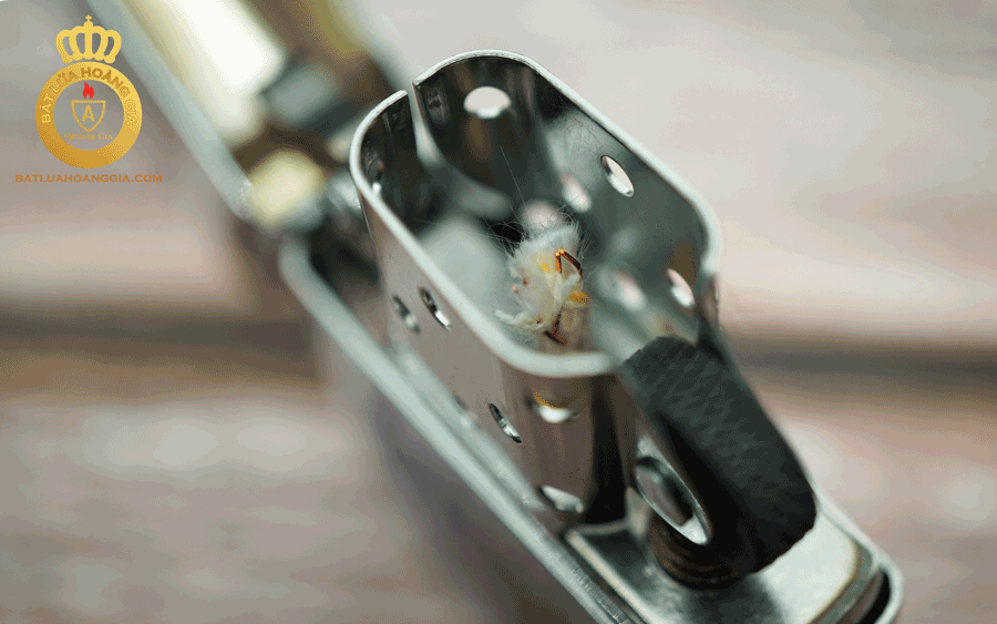 Đặc biệt bộ bông tơi xốp trị giá 120K giúp chiếc zippo lưu trữ xăng nhiều và lâu hơn. (Có một số khách dùng cầm xăng được trên 10 ngày). Zippo chính hãng thì sợi tim sẽ rất thanh mảnh và có sợi chỉ màu vàng quấn quanh.