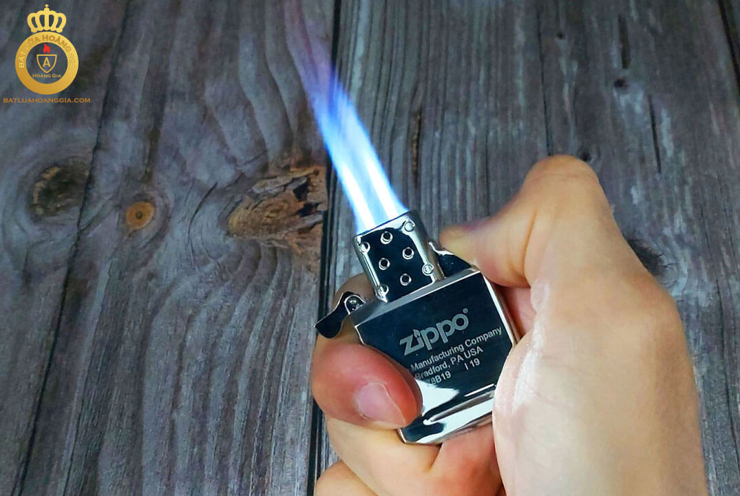- Âm thanh : Ruột zippo USA chạy bằng ga không ảnh hưởng đến tiếng kêu đặc trưng của vỏ bật