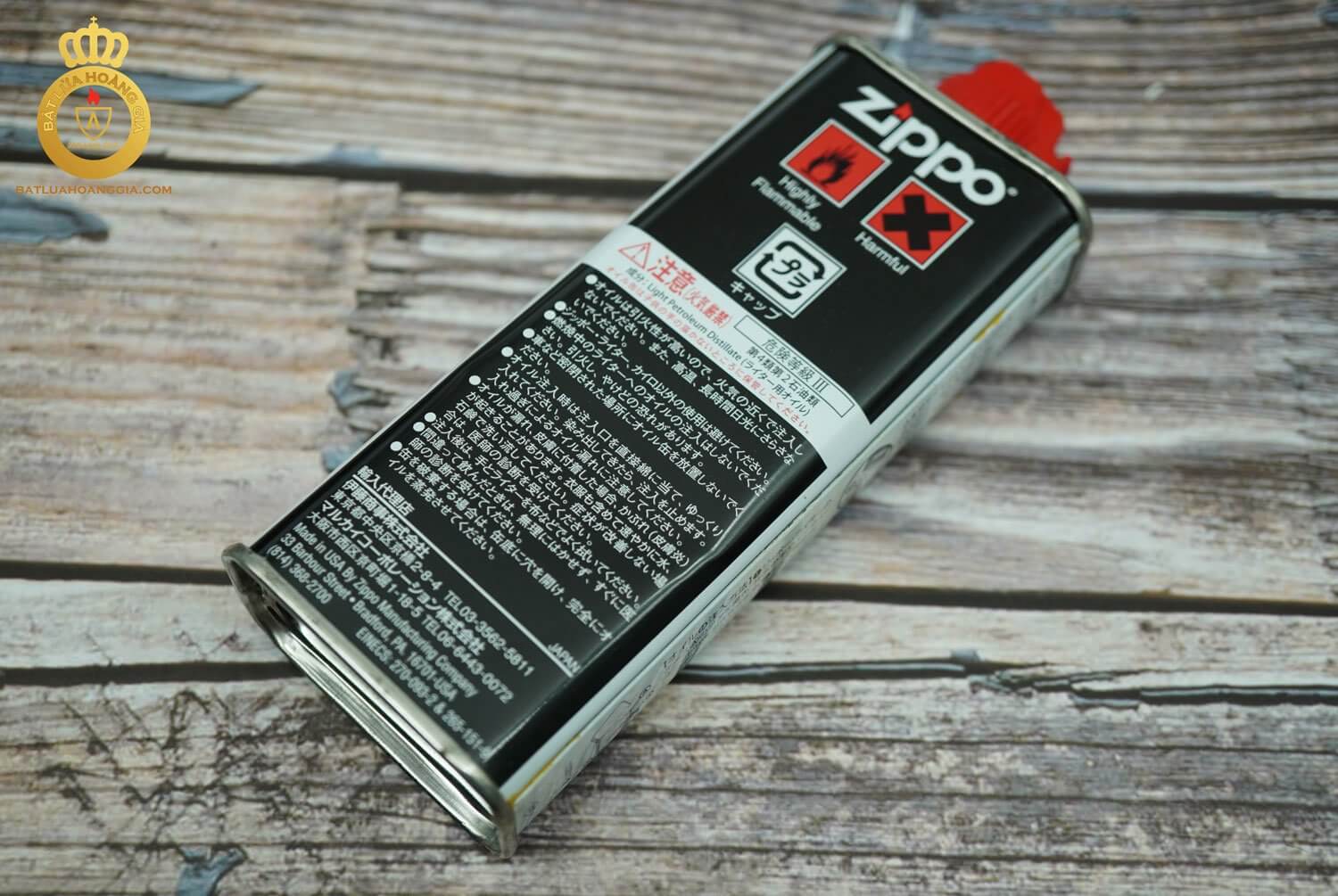 Bình xăng của sét Zippo này như đã nói thì sét Zippo này được sản xuất dành riêng cho thị trường Nhật Bản nên nó sẽ có chữ Nhật ở thân bình xăng và nắp hộp Zippo, dưới đây là ảnh chi tiết của bình xăng
