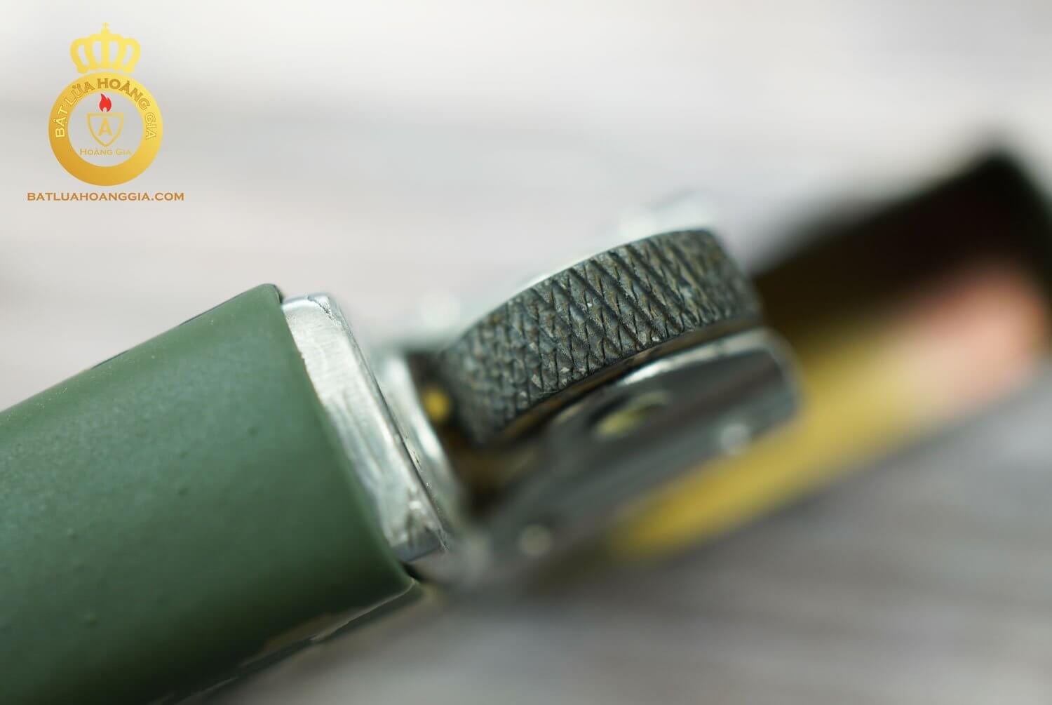Cổ đá chiếc zippo được chế tác từ đồng, bán xe cắt xéo sâu và sắc sảo, còn rất mới và nhạy lửa.