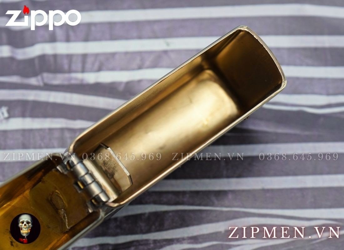 Ruột của chiếc zippo chính hãng này có màu vàng được làm bằng inox chuyên dụng không rỉ phủ xi vàng rất bóng và đẹp.