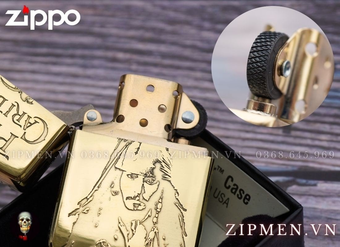 Thông tin chi tiết chiếc zippo chủ đề cướp biển vùng caribe.