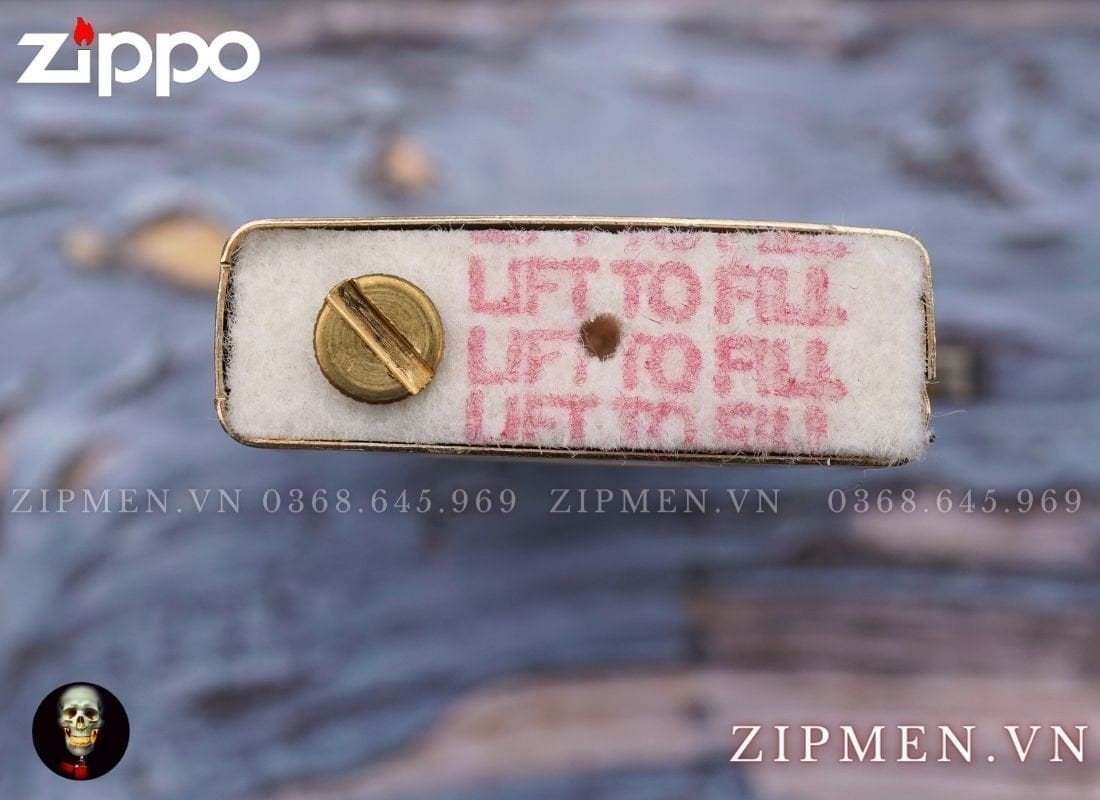Ruột zippo được làm bằng thép chuyên dụng chống rỉ và phủ xi vàng bóng để đồng bộ với vỏ cho đẹp hơn. Vít ốc thay đá cũng được làm bằng đồng rất sắc xảo.