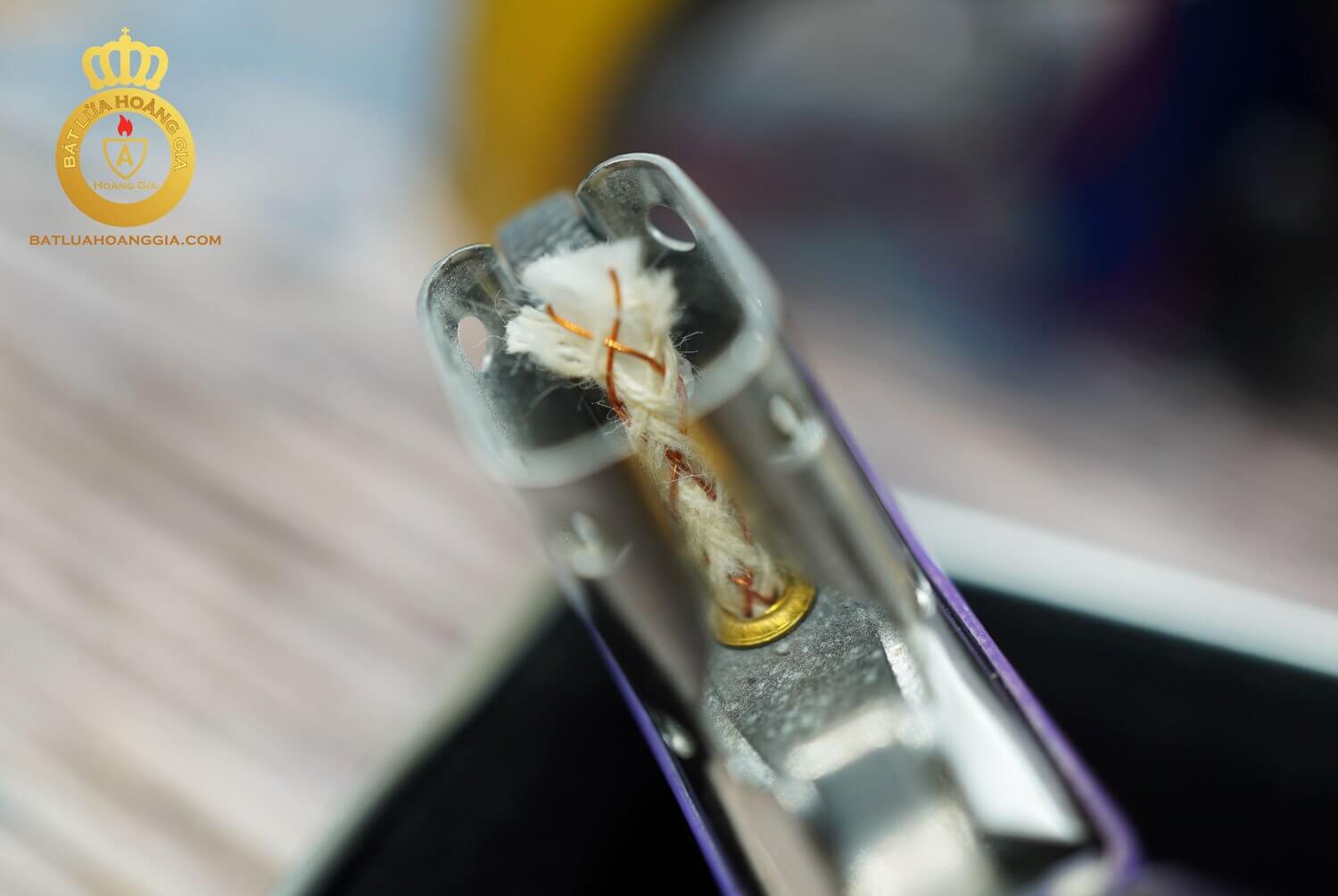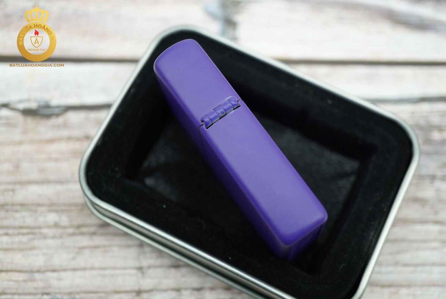 Chiếc zippo này có bề mặt gần như mới, có nguyên cả hộp.Với chất liệu là bằng đồng khối được bọc 1 lớp sơn tĩnh điện màu tím rất dầy và bền đẹp
