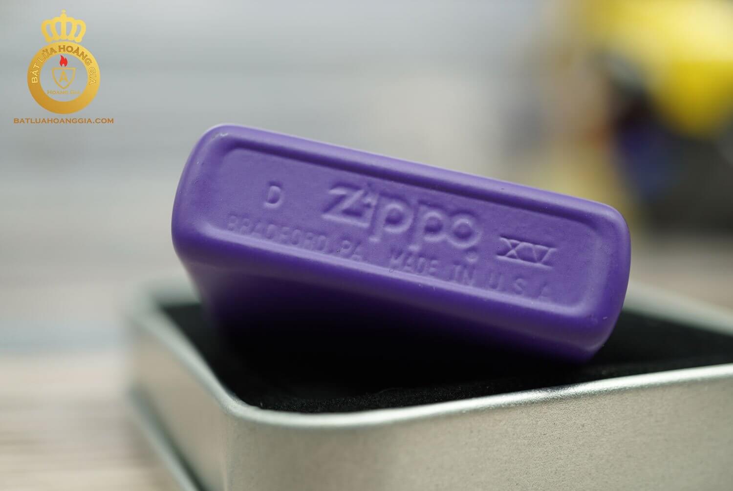 Mặt sau của chiếc Zippo la mã XV này là được sơn tĩnh điện màu tím không có hoa văn hoạ tiết gì..