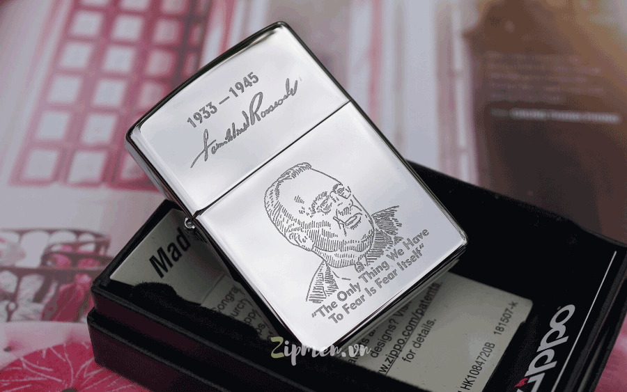 Vậy hôm nay, shop bật lửa Zippo Zipmen sẽ giới thiệu đến anh em những điều đặc biệt của chiếc Zippo usa khắc tổng thống Franklin D. Roosevelt nhé !