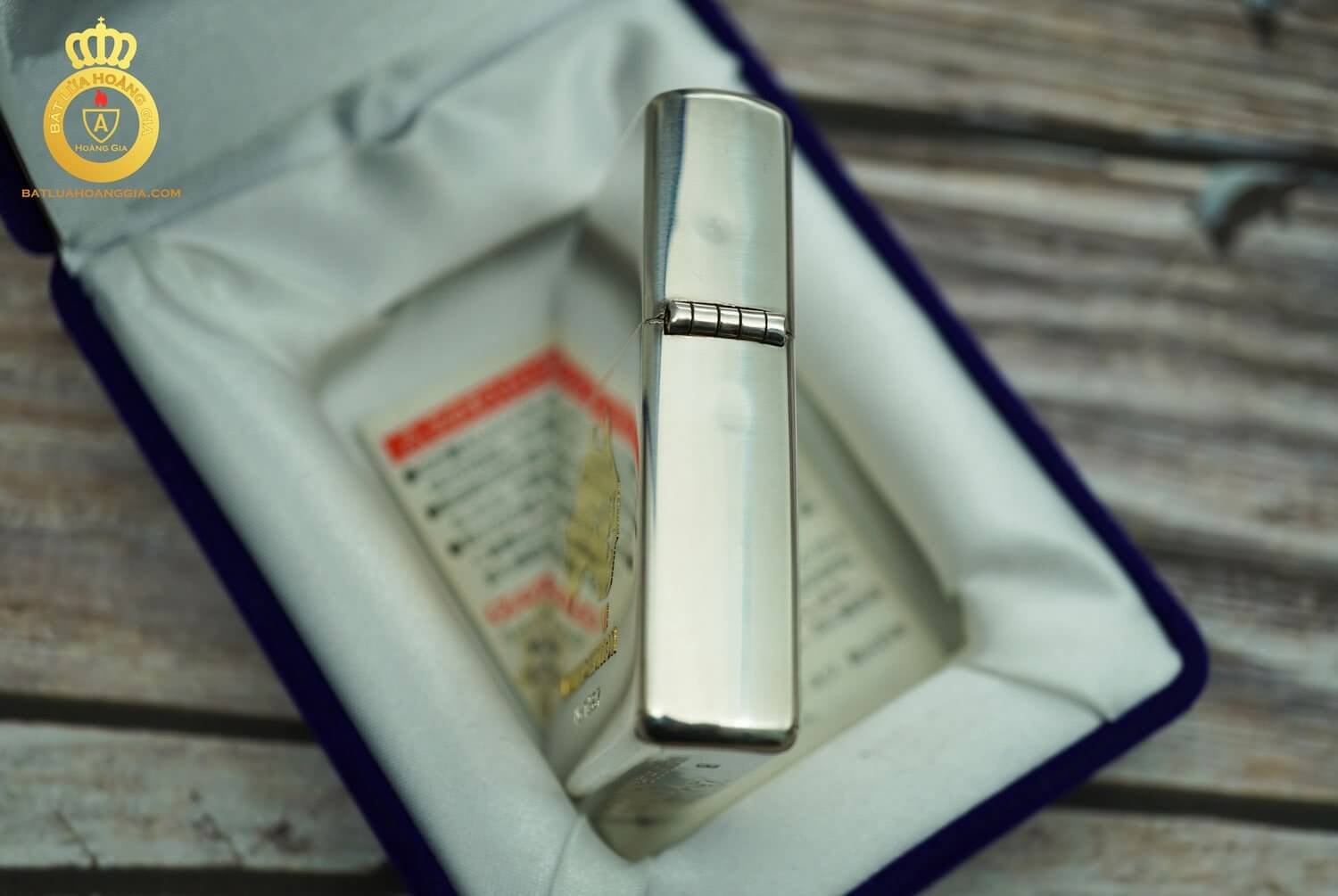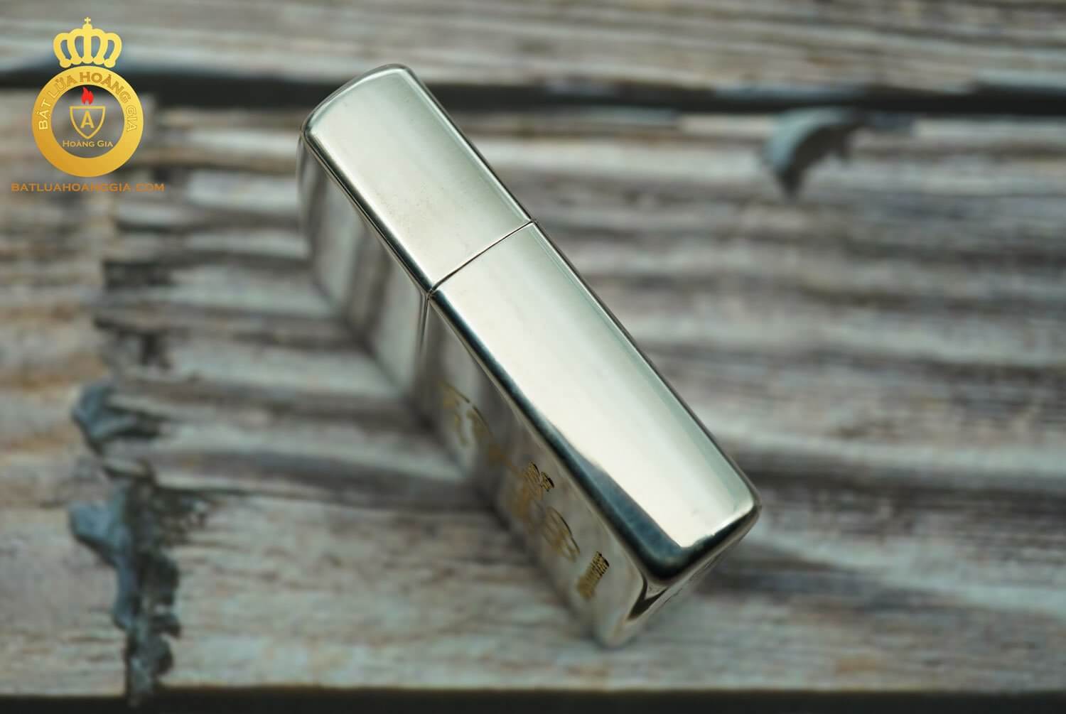 Các hình và logo được khắc axit ăn mòn nổi đều được mạ 1 lớp vàng 18k trên bề mặt của các hình khắc đó là điểm nổi bật của chiếc Zippo cổ này