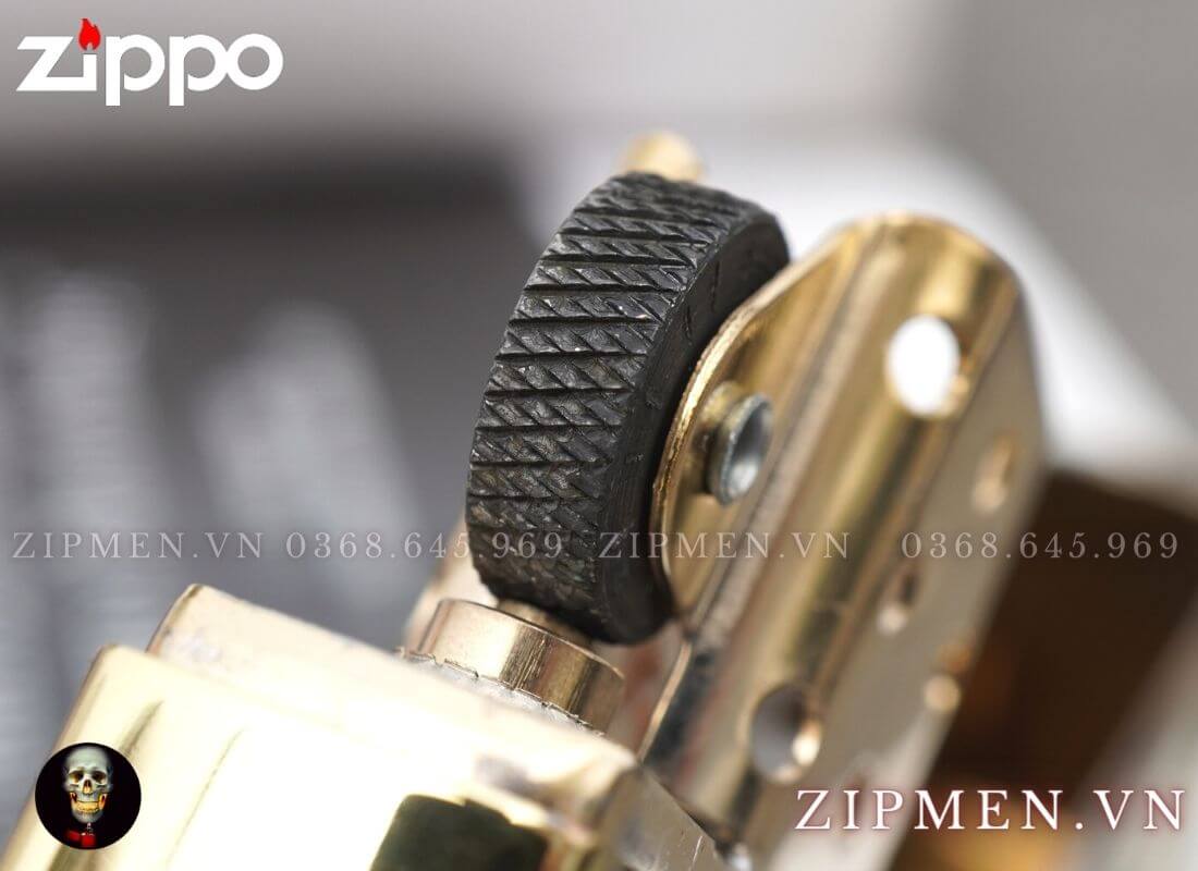 Bên cạnh đó cổ đá màu vàng được làm bằng đồng tròn đều, bánh xe được cắt xéo sâu hình ô trám làm tăng độ nhạy bén ma sát vì vậy quẹt lửa vô cùng nhạy, quẹt phát nào cháy phát đó.