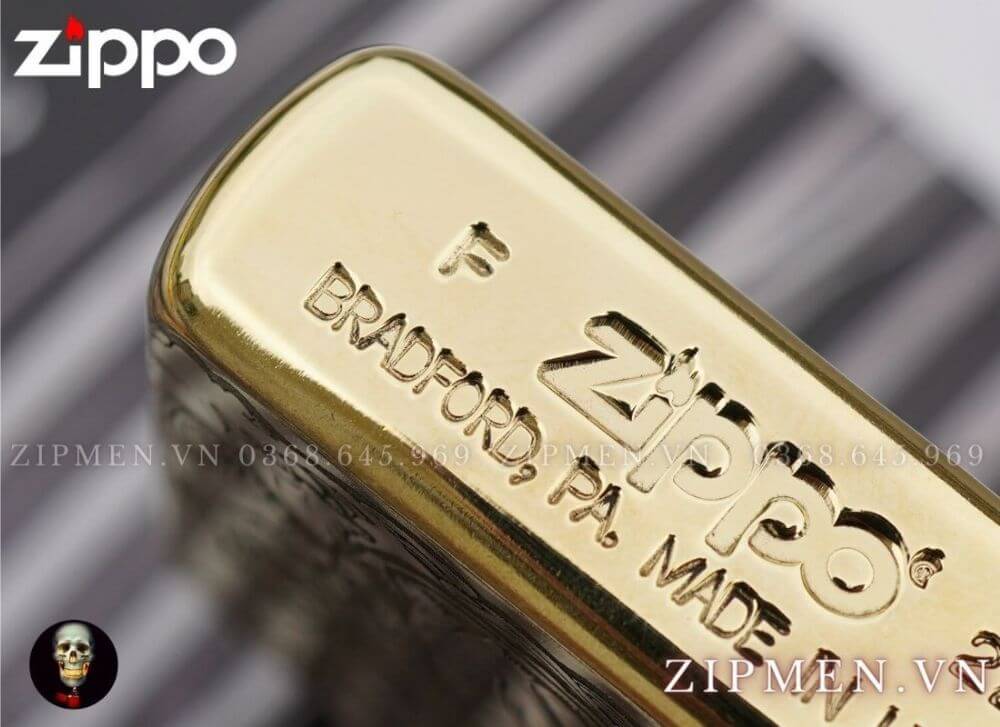 Mộc đáy của chiếc hộp quẹt zippo này được dập chìm, chữ rất rõ ràng, sâu, sắc nét nên không bao giờ bị mờ hay mòn chữ anh em nhé.