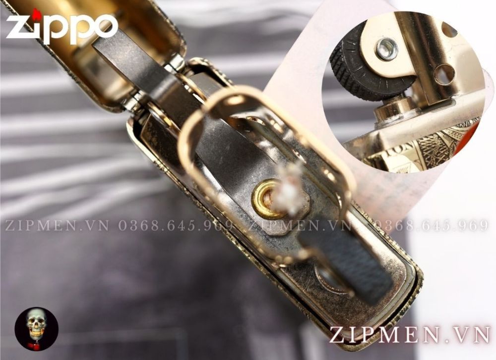 Ruột của chiếc zippo chính hãng được làm từ thép chuyên dụng chống rỉ sau đó phủ xi màu vàng sáng bóng rất đẹp, cổ đá cao được làm bằng đồng, bo tròn mượt mà, bánh xe được cắt xéo sâu hình ô trám, sắc sảo, rất bén vì vậy độ nhạy lửa gần như 100% anh em nhé.
