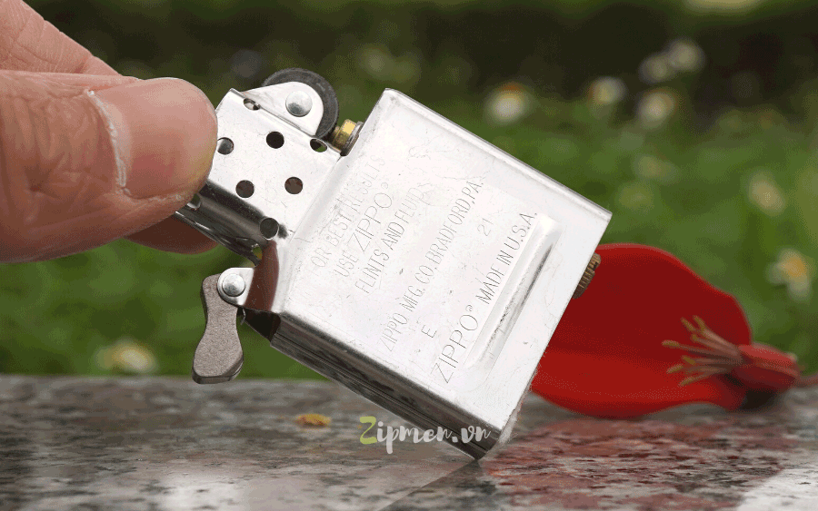 Ngoài ra các chi tiết khác của bật lửa Zippo như búa gõ, lưỡi gà, đinh tán… cũng rất chắc chắn, vuông thành sắc cạnh.