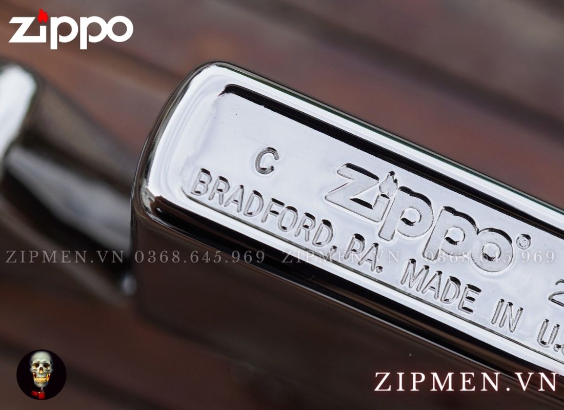 Cây zippo phổ thông này có mộc đáy lõm với những dòng chữ và số được rập rất sâu, rất thanh mảnh thể hiện sự tinh tế trong khâu sản xuất của một chiếc zippo USA chính hãng. Mộc đáy tránh sự mài mòn theo thời gian.