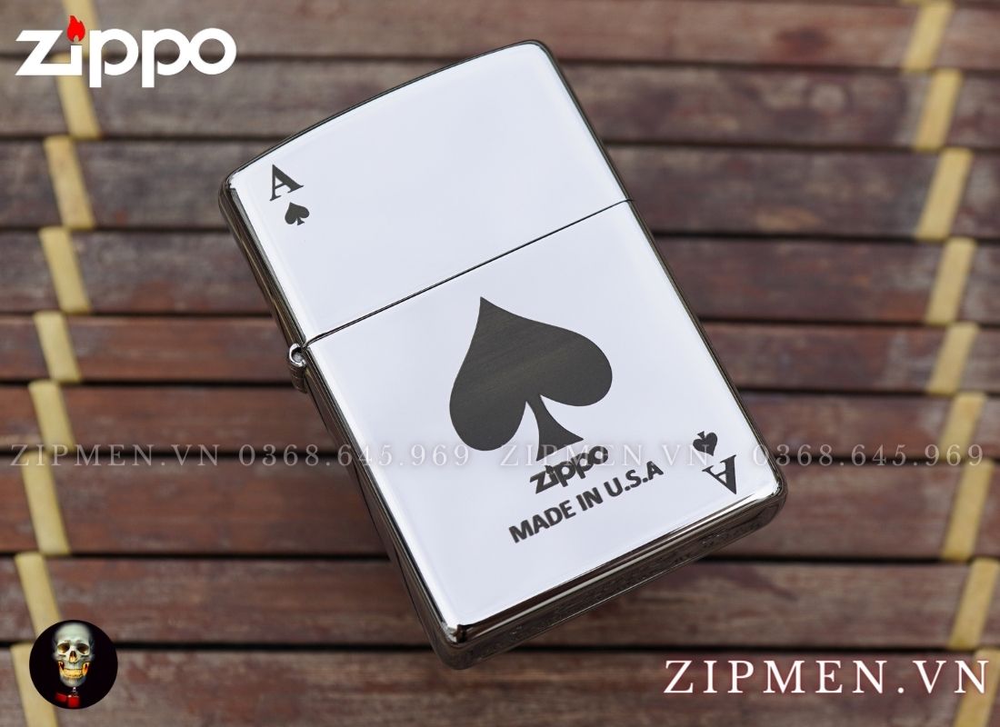 Mặt trước zippo được khắc chìm với hoạ tiết lá bài át bích rất sâu và sắc sảo nên không lo bị mòn hình trong quá trình sử dụng.