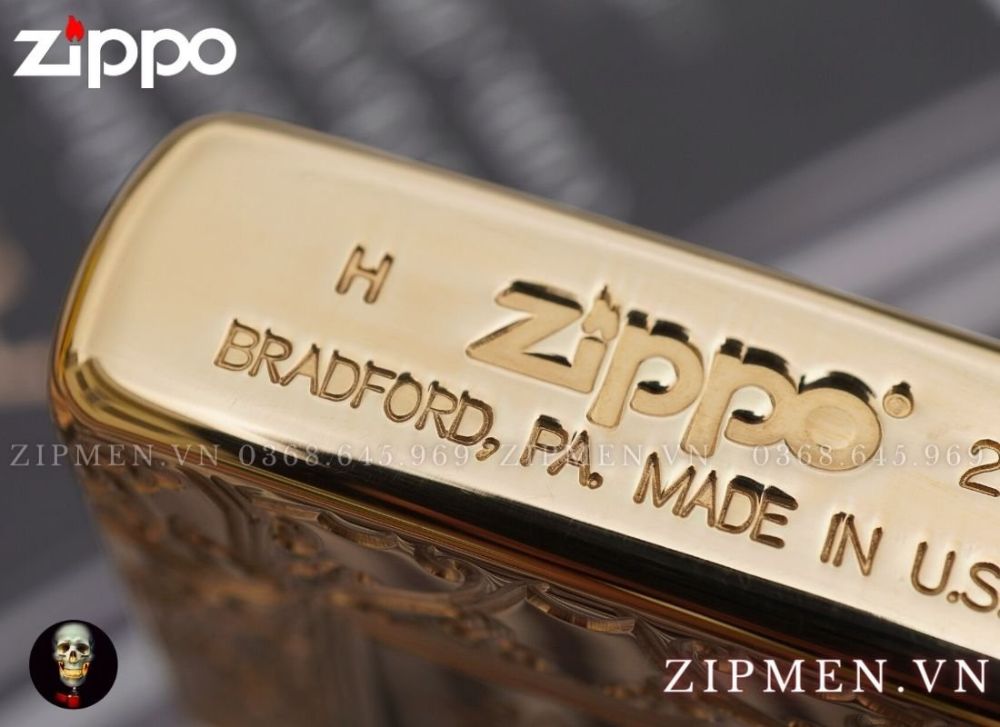 Cũng như những cây zippo armor khác cây này có mộc đáy lồi, các dòng chữ dập chìm các nét rất sâu và rõ ràng chắc chắn sẽ không bao giờ bị mài mòn theo thời gian được.