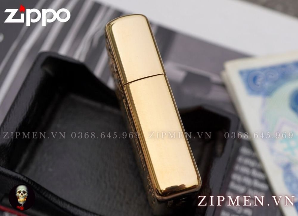 Vỏ cây Zippo armor cao cấp này được làm bằng đồng nguyên khối, màu vàng đồng rất đẹp và sáng bóng, vì vậy không sợ bị bay màu hay rỉ sét theo thời gian.