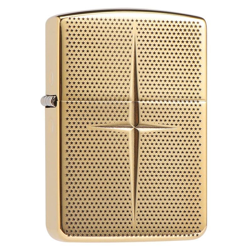 Điểm nhấn của chiếc hộp quẹt này là vỏ đồng brass nguyên khối khắc ăn mòn sâu chủ đề chữ thập, và nền sao đẹp mắt. Tất cả các chi tiết này được khắc ăn mòn cho độ bền vượt trội với thời gian.